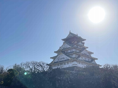 大阪でも人気の観光地の大阪城 お堀の石垣の角度と陰影が美しい それにしても正月なのに関わらず外国人観光客だらけで少し驚きました。城門付近は混雑していますが公園広場の方へ行けば静かな空間をゆっくりサイクリングもできます