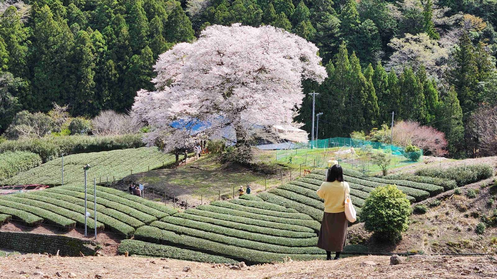 途中で仲良くなったサイクリストに加わって頂き、家山の並木を経て3人で牛代の桜を訪問。
