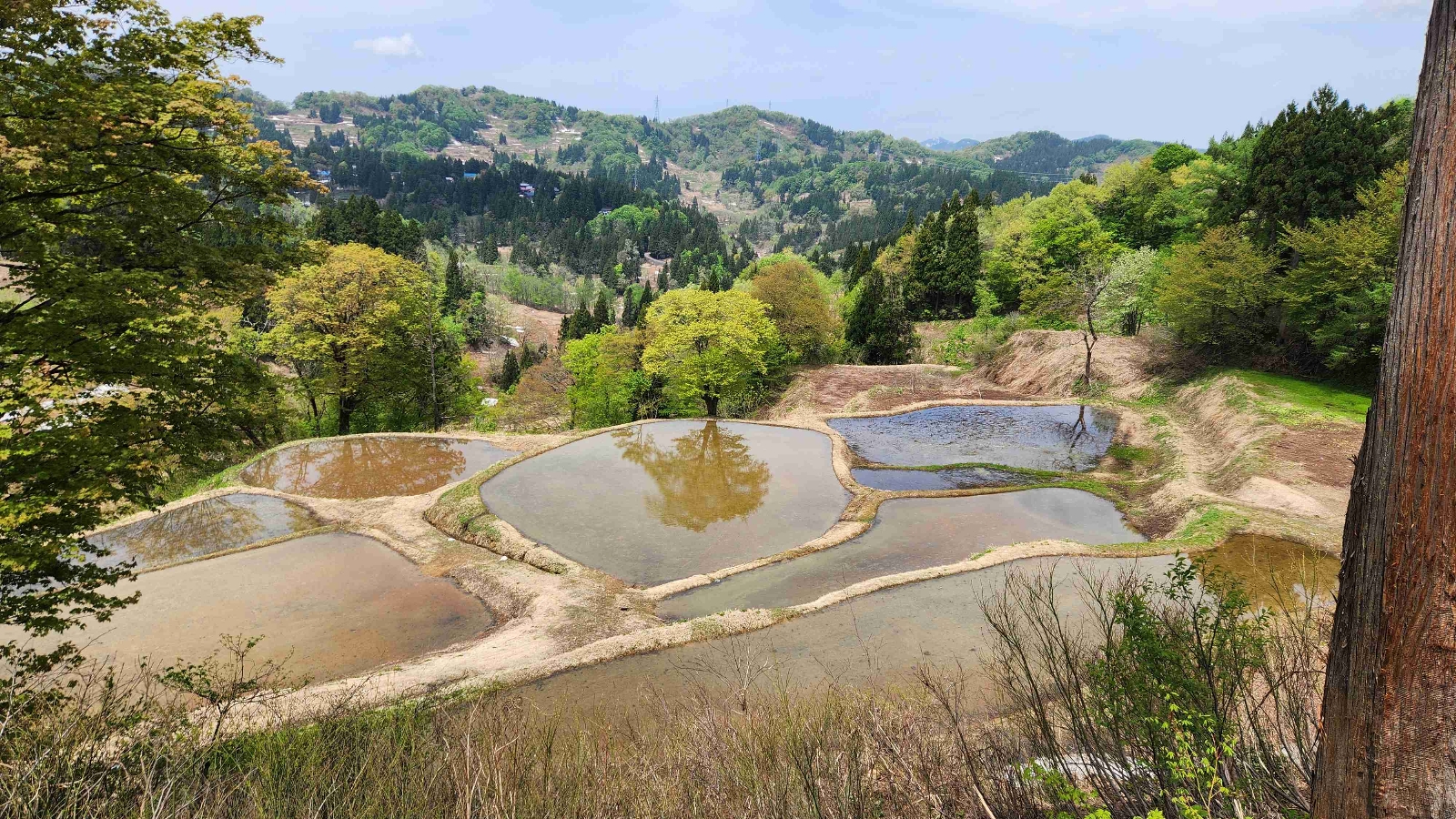 最初の棚田はいちばんの有名どころ、星峠の棚田。5月には入ったし、水入れは既に行っている?様子だけど、ものすごい残雪なので、実際に水を張ったのか、単なる雪の溶け水なだけなのか… それはそれで綺麗だけど1ヶ月後ぐらいの季節にまた訪れてみたい。