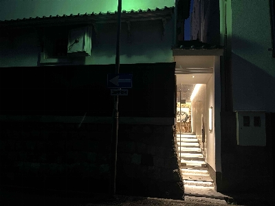 ここまで見事に昔ながらの建物と店舗が融合した町並みは初めてみた。フュージョン度がすごい。 屋根の上に神様を祀っているのはかなり珍しい。