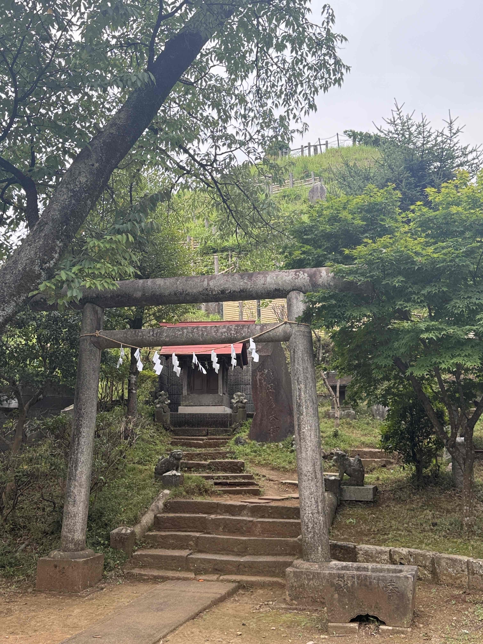 近くには住宅街があり、この辺りは荒幡富士市民公園になっていました 神社の脇を通り、九十九折を進み、カーブの度何合目か書いてある石碑がある ゆっくり進んでも2分で登頂‼️ 曇っていて親玉富士山は拝めず😅