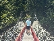 以前ネットで見た廃道区間と言われていた橋まで来てみたけど、普通に現役だった。車止めがあり、歩行者とバイク50c c以下は通行可能 橋の板が通るたびミシミシと音が鳴るので壊れないか心配になりながら無事走破! 橋から見る天竜川も綺麗で良かった! この橋、昭和46年にできたそうで、大井川の万世橋の架け替え工事の際に出た廃材の一部を貰い受けて、秋葉橋の架け替え工事をしたそう