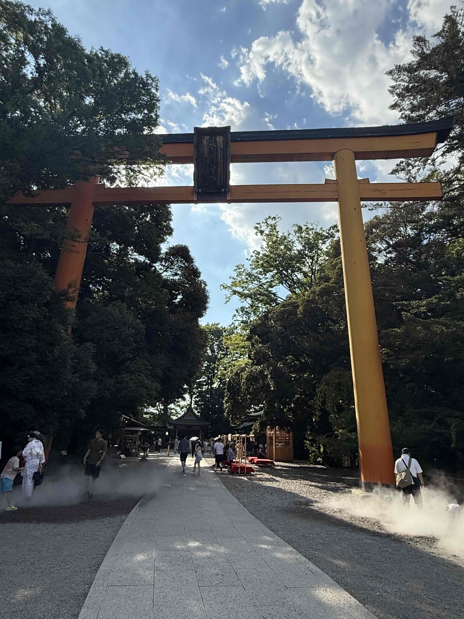 今年も風鈴の設置をしたと聞いたので来てみた! 平日だしあまり人がいないかと思いきや、意外に人だらけ・・・ 帰り際に大きな鳥居あたりから煙が😳と思ったらミストが出てた😅