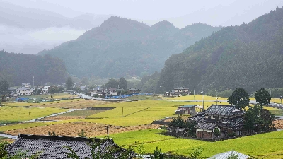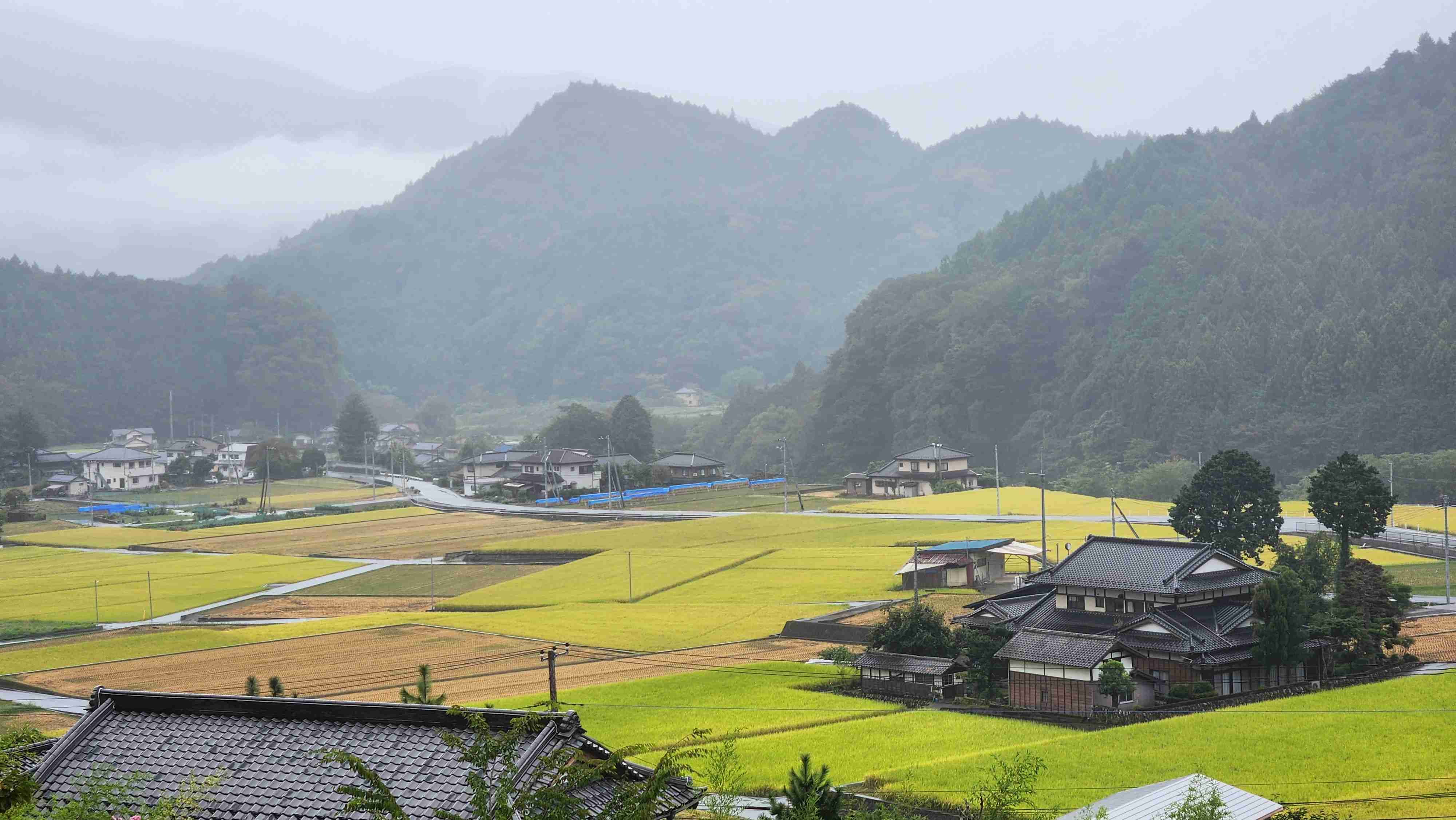 このコースのひとつの見どころは成島地区の田んぼ。終盤に差し掛かる稲刈りで残される区分は真っ黄色。 田んぼが綺麗な時期に訪れると必ず神社に上がる階段に登って上から写真を撮る。