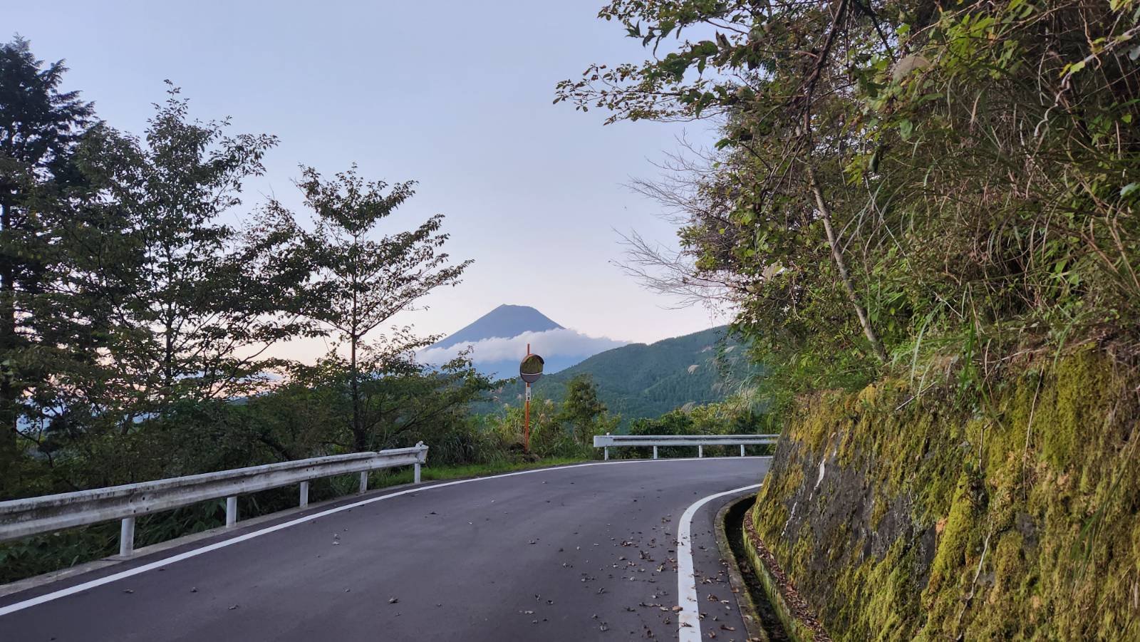 林道愛鷹線に戻ると、行きと同じ道を暫く走り、富士山の絶景スポットをもう一度通過。帰路の方は姿を見せてくれた。このあたりは、緩やかな登りがず~っと続き、少しずつ標高を取り戻していく。