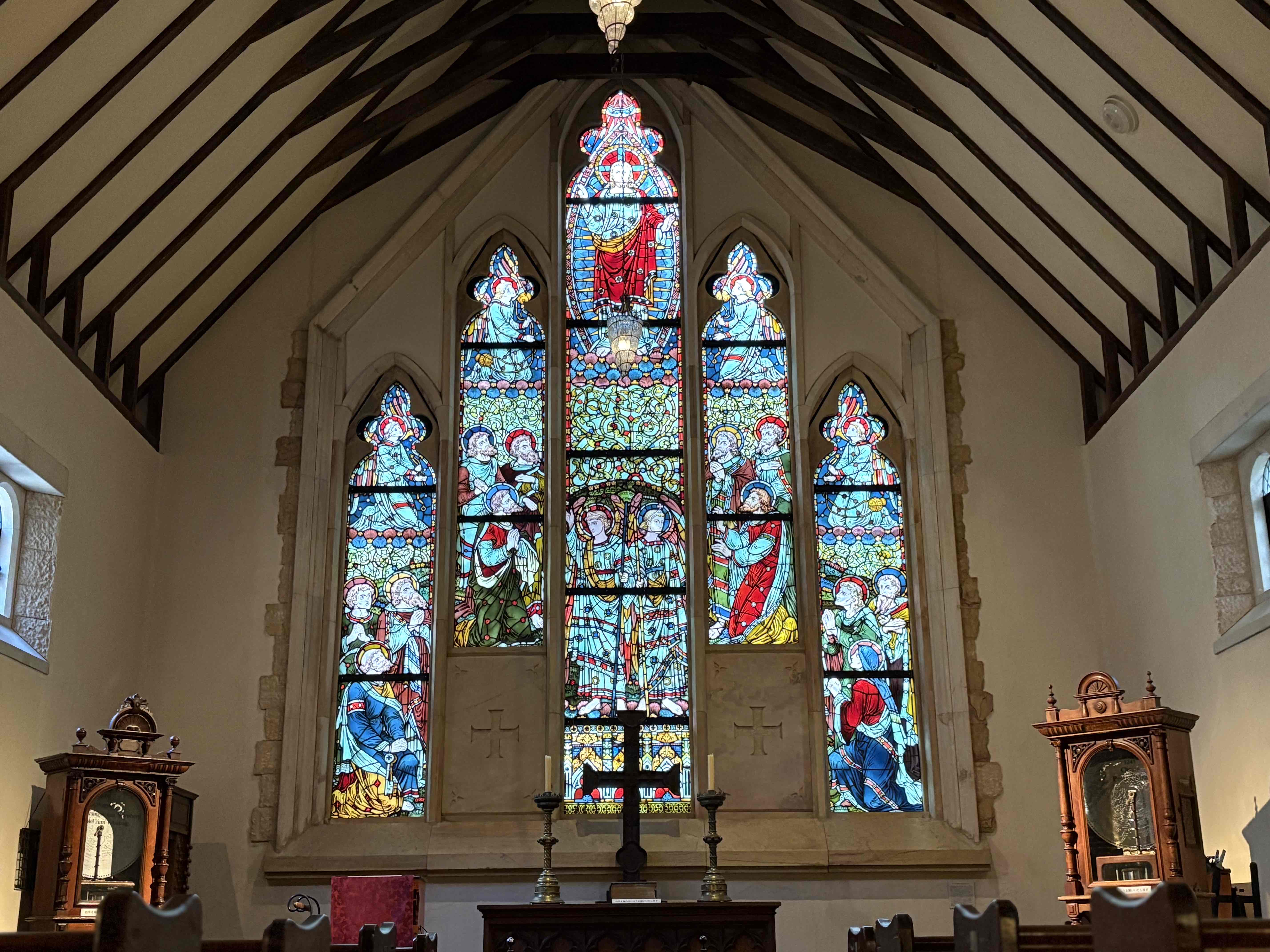 この日は晴れていたのでステンドグラスから綺麗に光が差し込んでいて教会ホールはパイプオルガンの音色も響いて幻想的で厳かな雰囲気がありました。