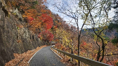今日のもうひとつの目的地、紅葉の明神挟。夏にも冬にも走っているが、紅葉の時期に来れて良かった。