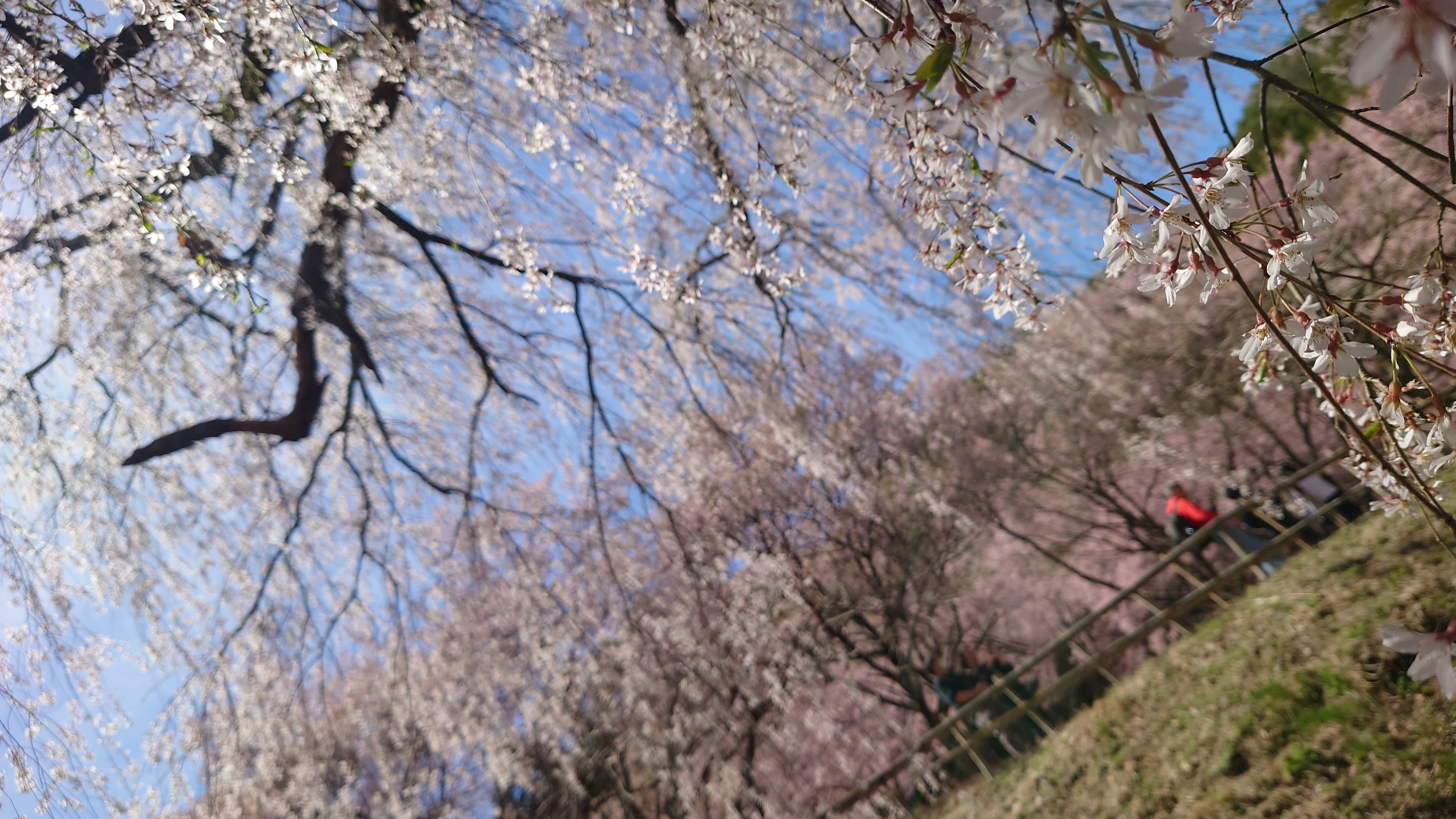 まだきれいに咲き誇っていた。枝垂れの下からのぞいた景色は見事だった。