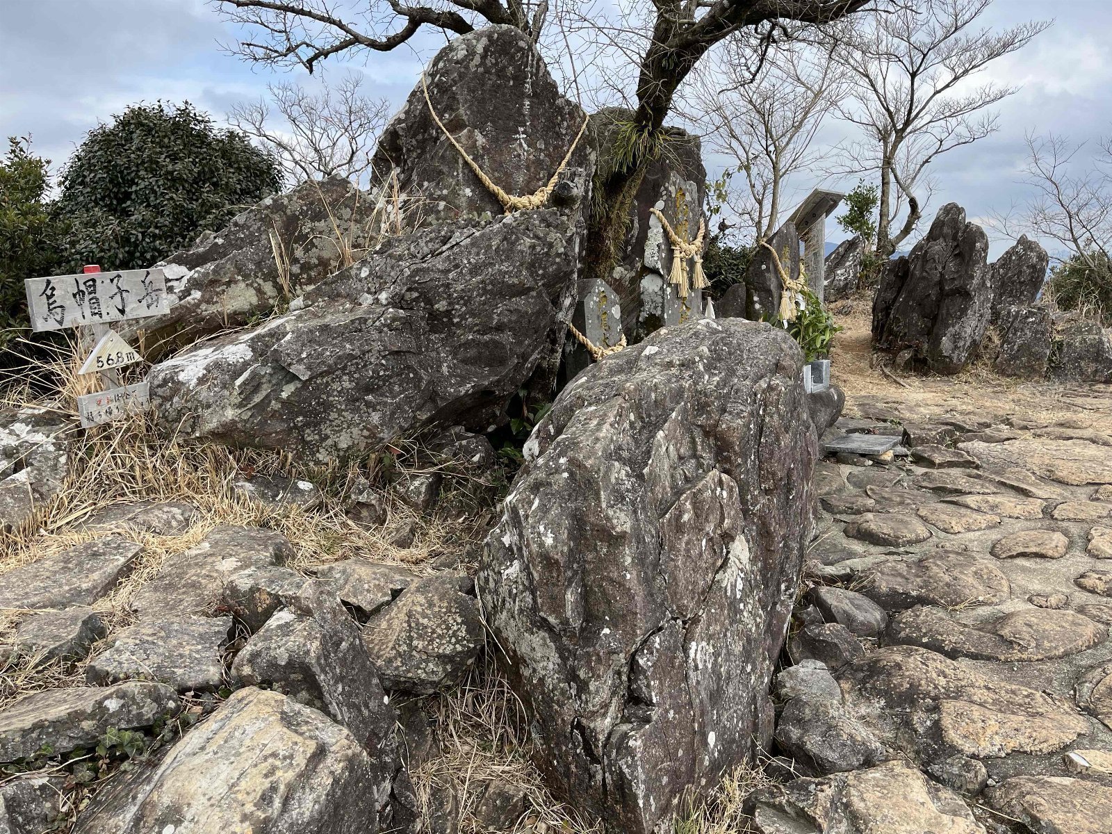 駐車場の奥に進むと但馬岳公園があり八重桜やアジサイ、ツツジなど四季折々の花が楽しめる。但馬岳は別名「奥弓張」と言われており、狭くてちょっと行きづらいスポット。