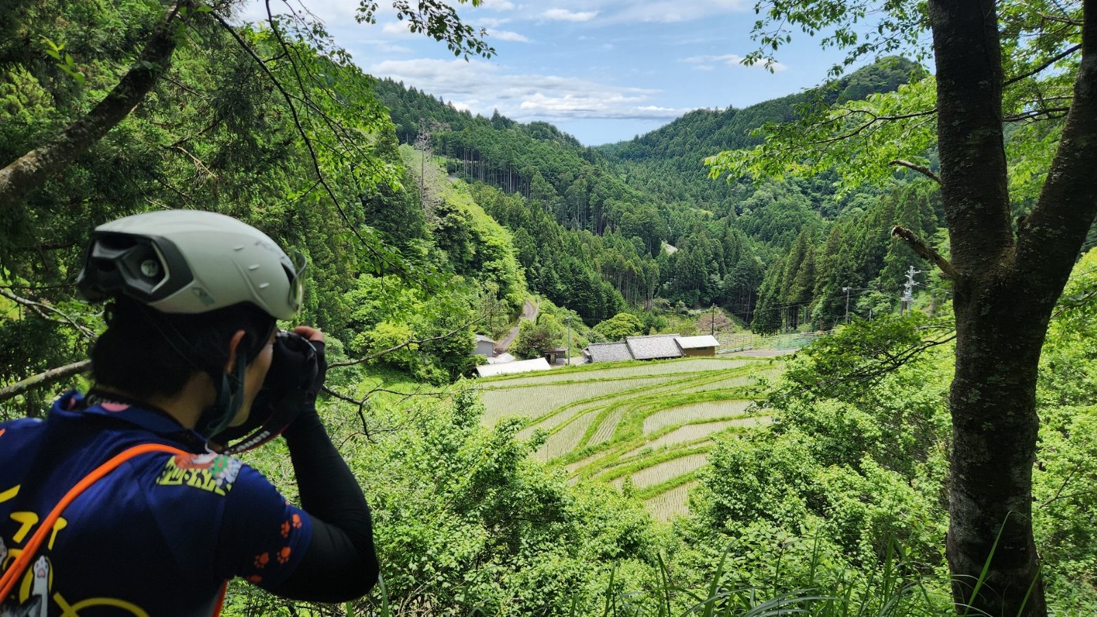 その上にある大栗安の棚田も最高だった。一応静岡県だからには、田んぼと民間の間に茶畑も欠かさず。