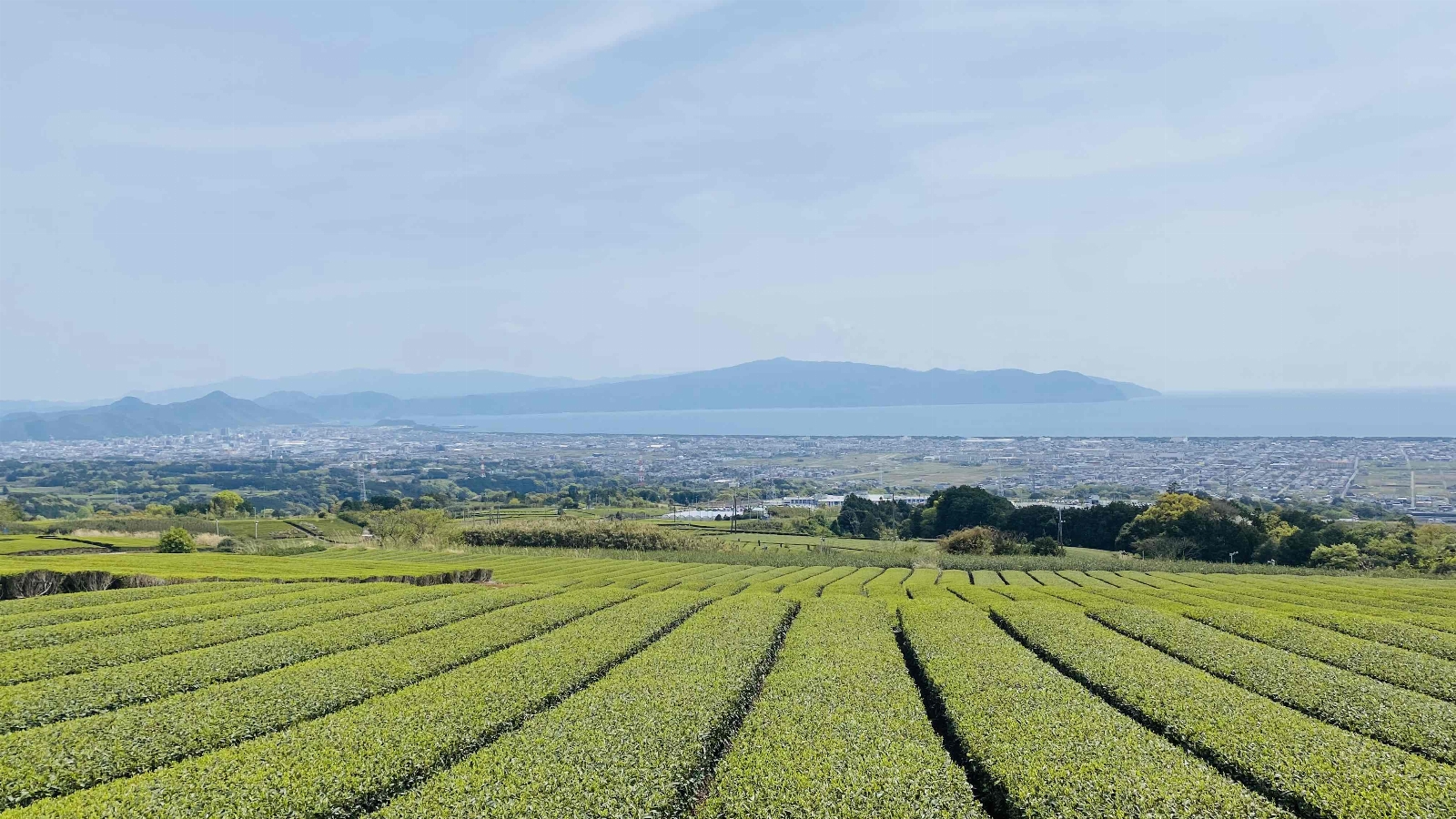 駿河湾、東部の街並み、茶畑、伊豆半島が見渡せる、 唯一見れないのは富士山だけだった。