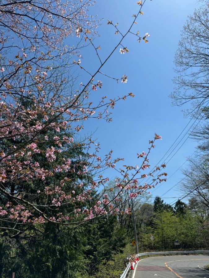 桜っぽいのもまだ咲いていて、意外と賑やかな感じだった。 名物?の男根岩では、停まって撮影するひとも(稀に)いる。
