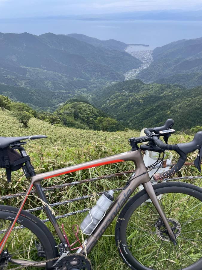 西伊豆スカイラインは尾根を走る平坦だと思ってたわけではないが、ここまでずっと上りだ。まだ続くと聞いた。 雑草が生い茂っていてあまり景色見えず。