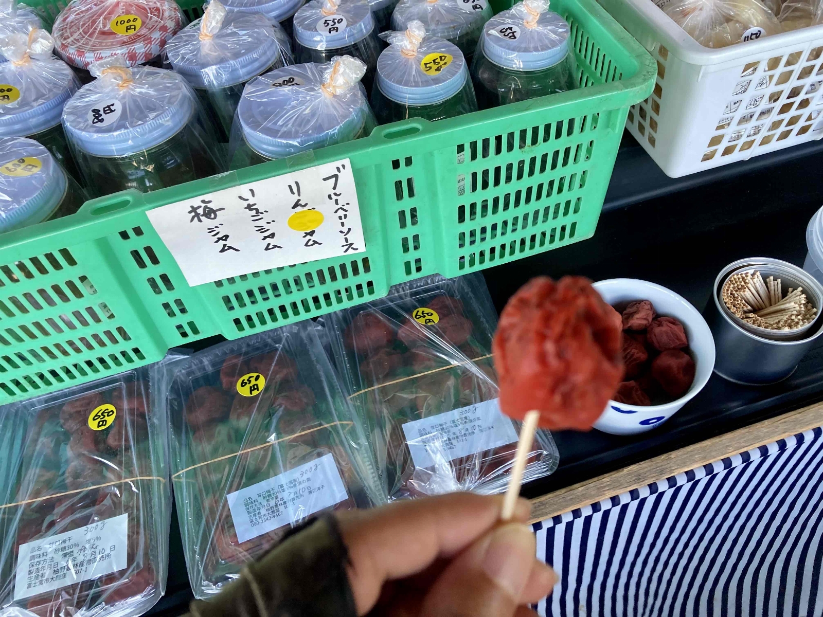 梅干し試食、きゅうりも試食😋うまし!お土産に梅ジャム👍 かき氷🍧を頂きました。 お気に入りの場所が増えました