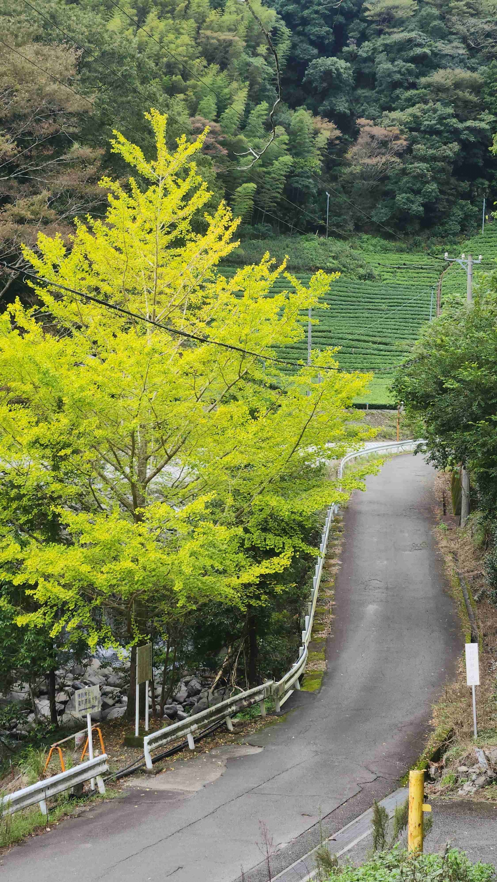 穂積神社までは本線から何度も行ったことあるし、反対側から抜けたこともあるけど、途中まで合流する農道を経由することはなかったから、茶畑の中を行く平山集落からの部分は新茶の季節にお預けして、竜爪街道の手前から登る道を選択。本線から下って周回するつもりだったけど、裏側だけではなく本線も通行止みたいなので、現場をみてから折り返すことに。結局そのまま平山の茶畑から下りました。