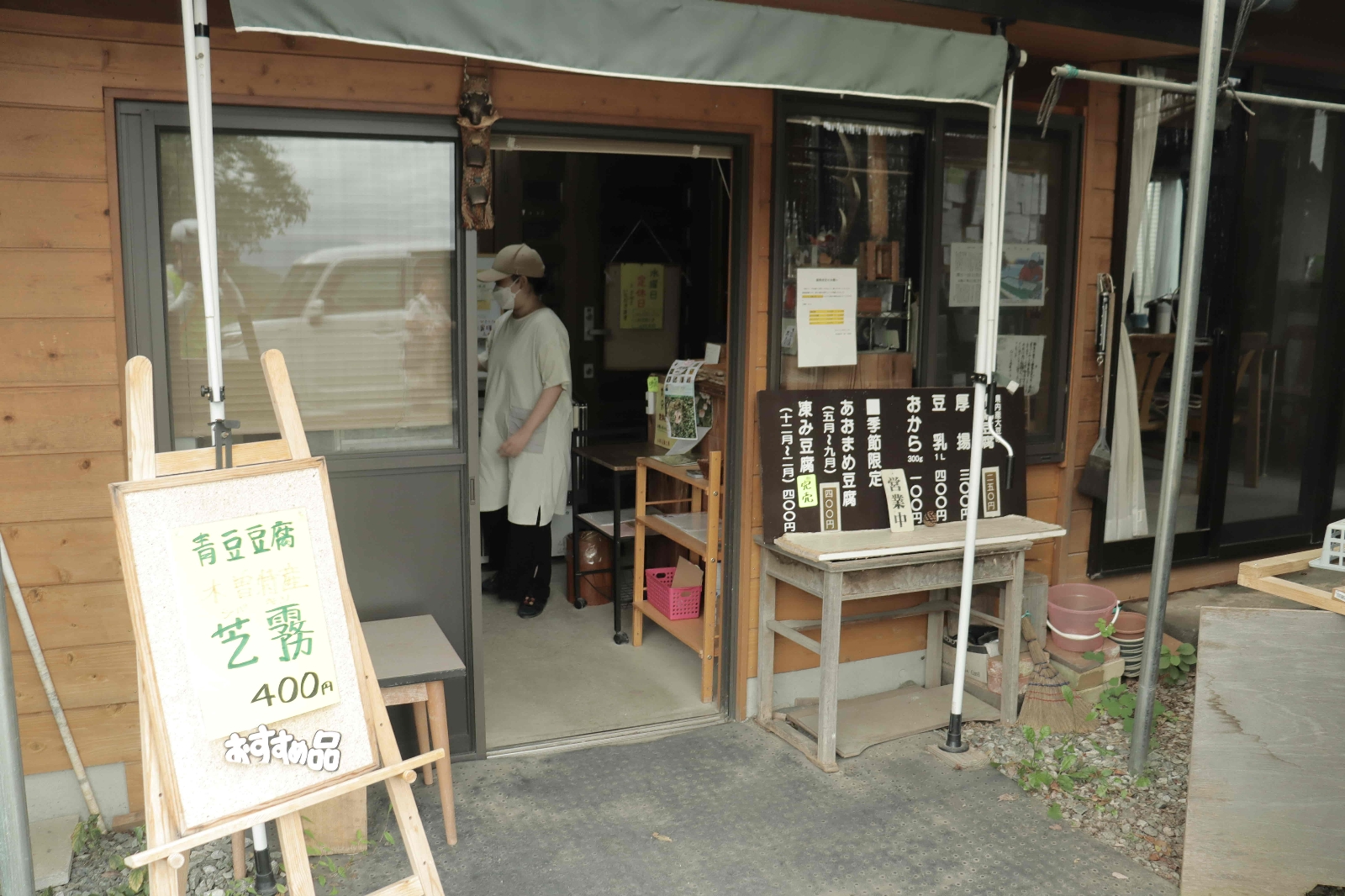 目の前には広大な畑が広がる豆腐屋さんがあった。 前から食べてみたいと思っていた緑色の大豆で出来ている豆腐が売ってたので麻婆茄子用に買ってみた。気温も低かったので品質問題なし😏 近くには自転車のレンタルもやっているカフェもあった。