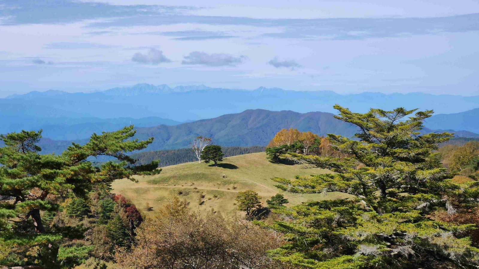 最高地点の入笠山まで、富士見高原をジワジワと登っていく。 八ヶ岳に臨む頂上のパノラマ台も素晴らしいけど、個人的には入笠牧場の絶景の方が印象的だった。空気が澄んでいるおかげで、中央アルプスを端から端まで、そして御嶽山まで一望できた。