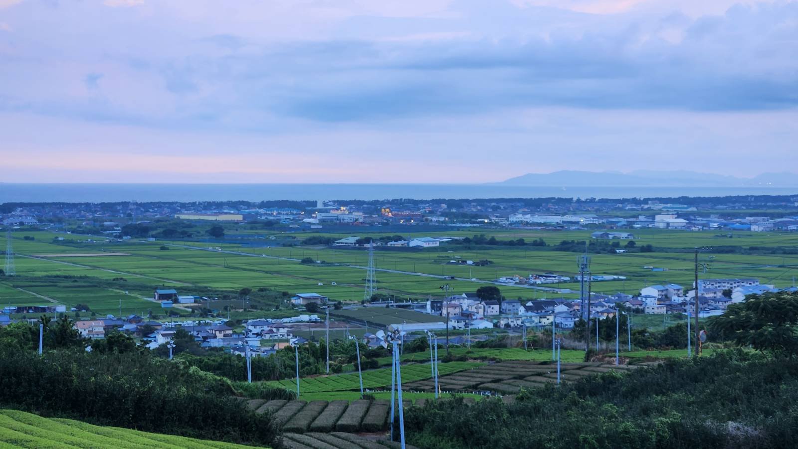 そして愛鷹山の麓にたどり着くと、平坦が登りに、田んぼが茶畑に切り変わる。富士市街に降りる夕日を見てから大人しく帰宅。
