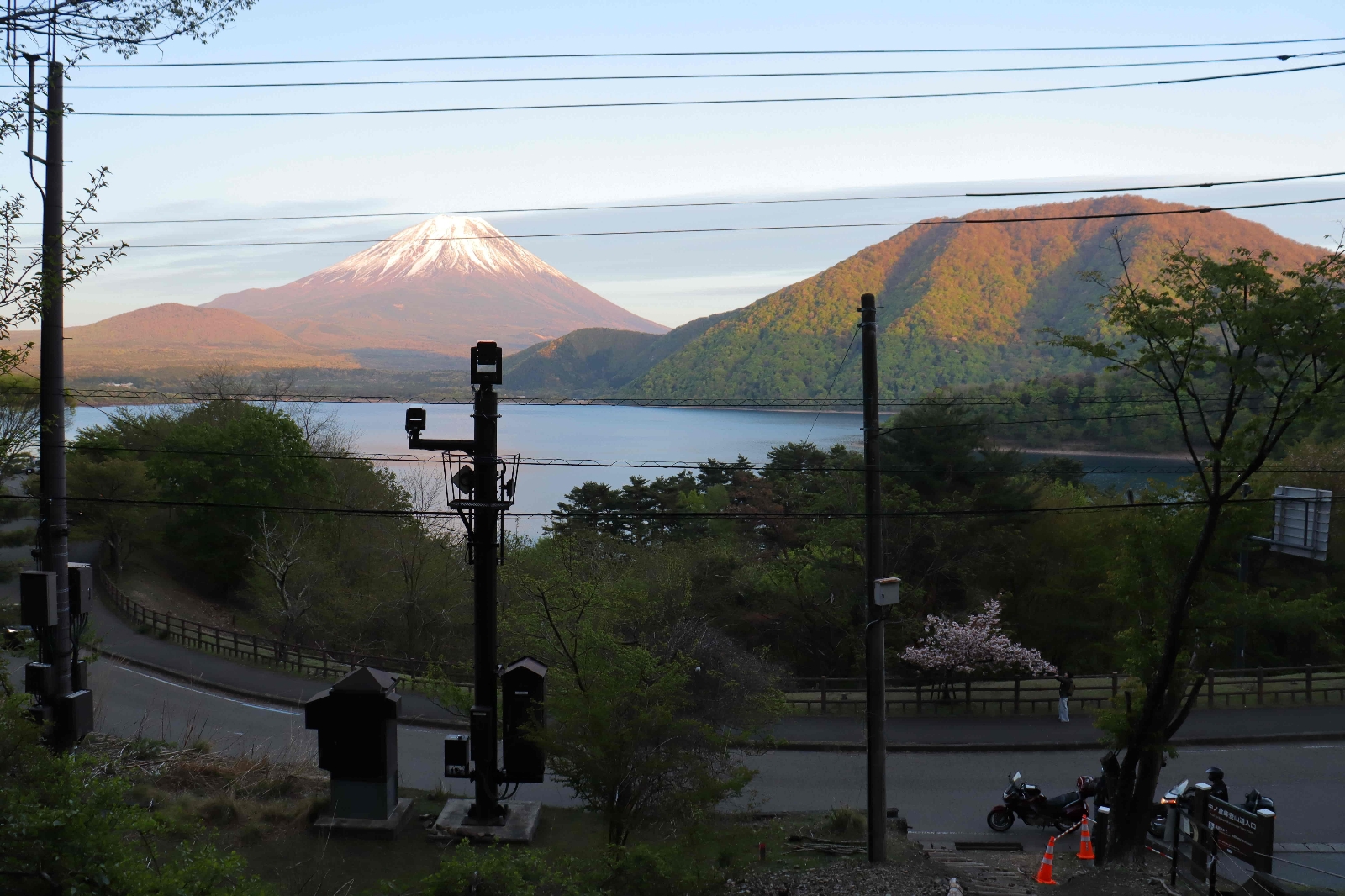 富士五湖のうちの五湖目、本栖湖。北岸から見た富士山が1000円札に印刷されていることで有名になっています。身延に抜ける「本栖みち」は交通量が多いのに対し、西側を通る「本栖湖畔線」は日陰が多く、冬は冬季閉鎖になります。