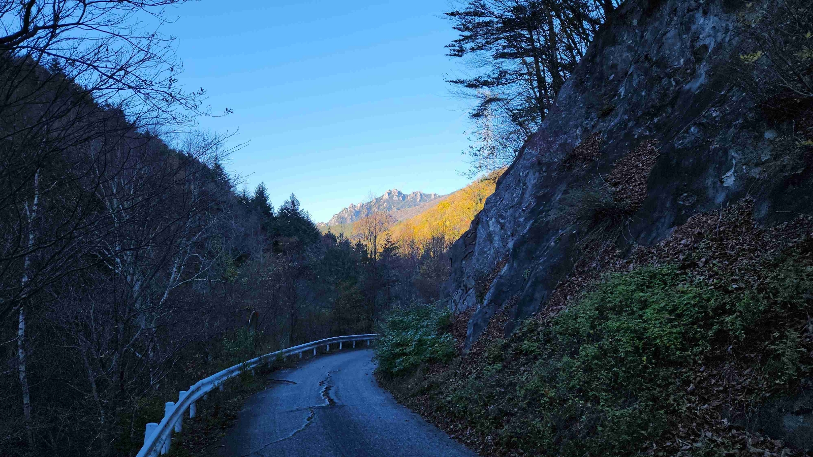瑞牆山、金峰山など甲府盆地の北側に続く産地を横断する厳しい山岳コース。水晶の産地だったことが名前の由来です。終始立派な杉林のなかに続く峠道が続き、順番に瑞牆山、木賊峠、乙女高原の3連峠で構成されています。基本的には森の中を走ることになりますが、ところどころ瑞牆山、金峰山、八ヶ岳や富士山も見えます。