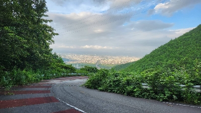 富士山の絶景スポット。山の合間に、富士川、富士市と富士山を眺めることができる。ここまでの登りは約1.5km程度登るが、勾配はそれほどきつくなく、頑張れば初心者でも登れる。