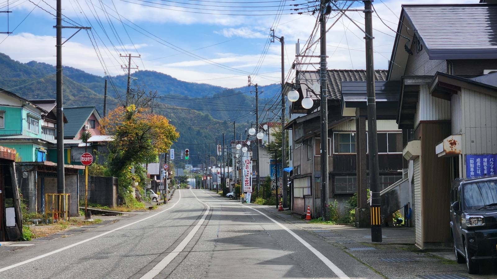 温泉街の街並み。