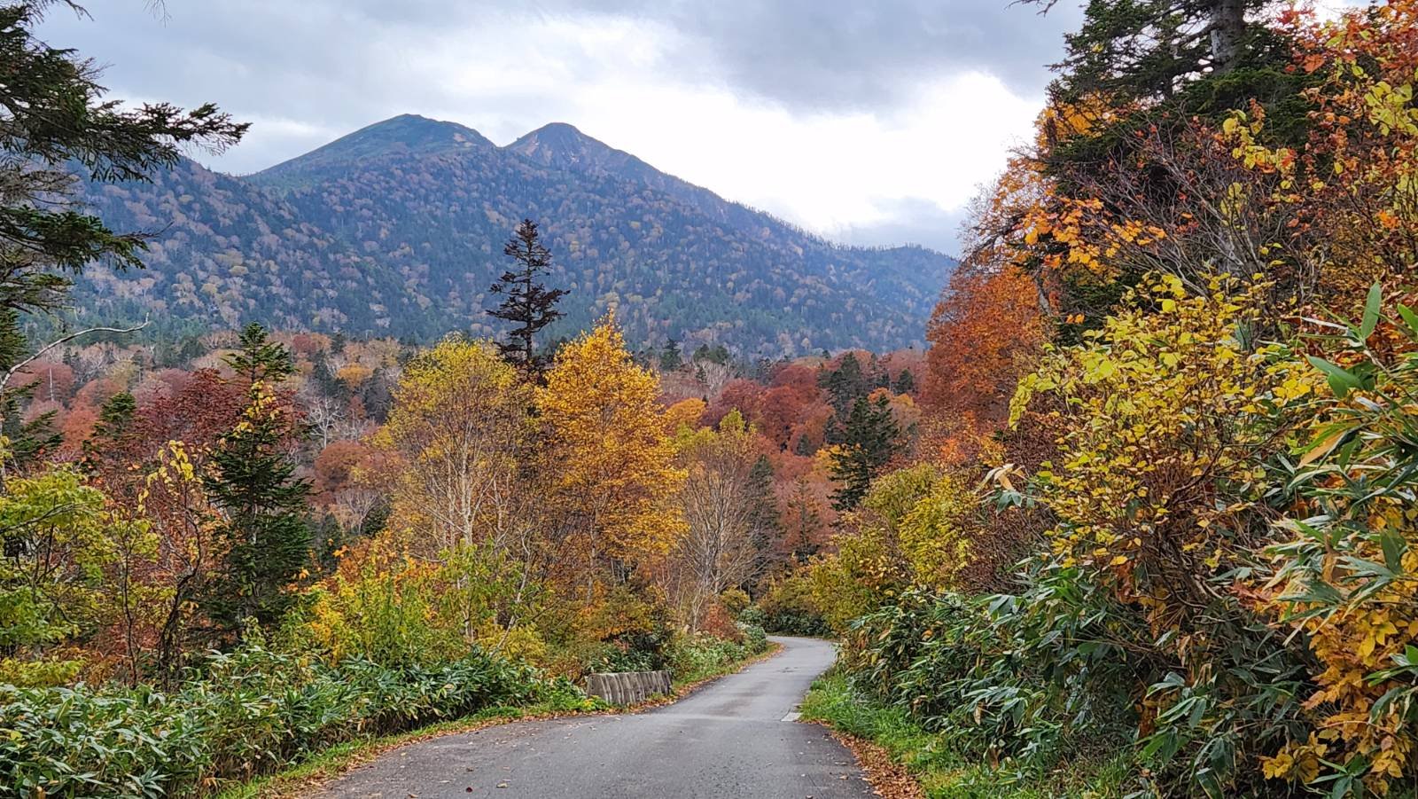 尾瀬の最高地点付近からの眺め。雄大な燧ケ岳が背景を占める。