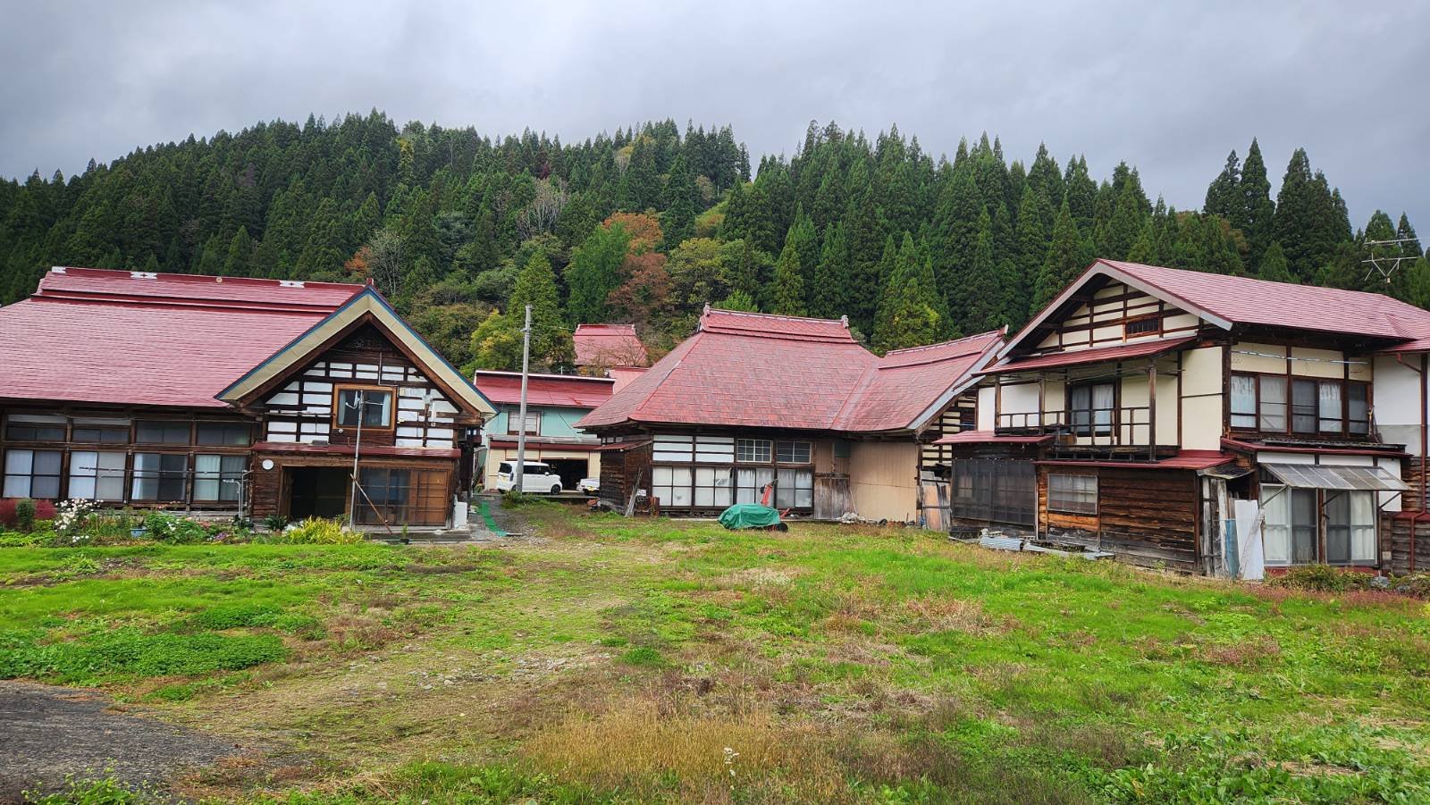 古い街並みが残る集落。地域の集落の多くは屋根が青色になっている一方、こちらはほとんどが赤色。
