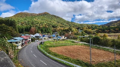 羽鳥ダムのすぐ下にある山間集落。山と田んぼに囲まれて、農村集落そのもの。沿道から少し上がると全体を見下ろせるスポットがある。