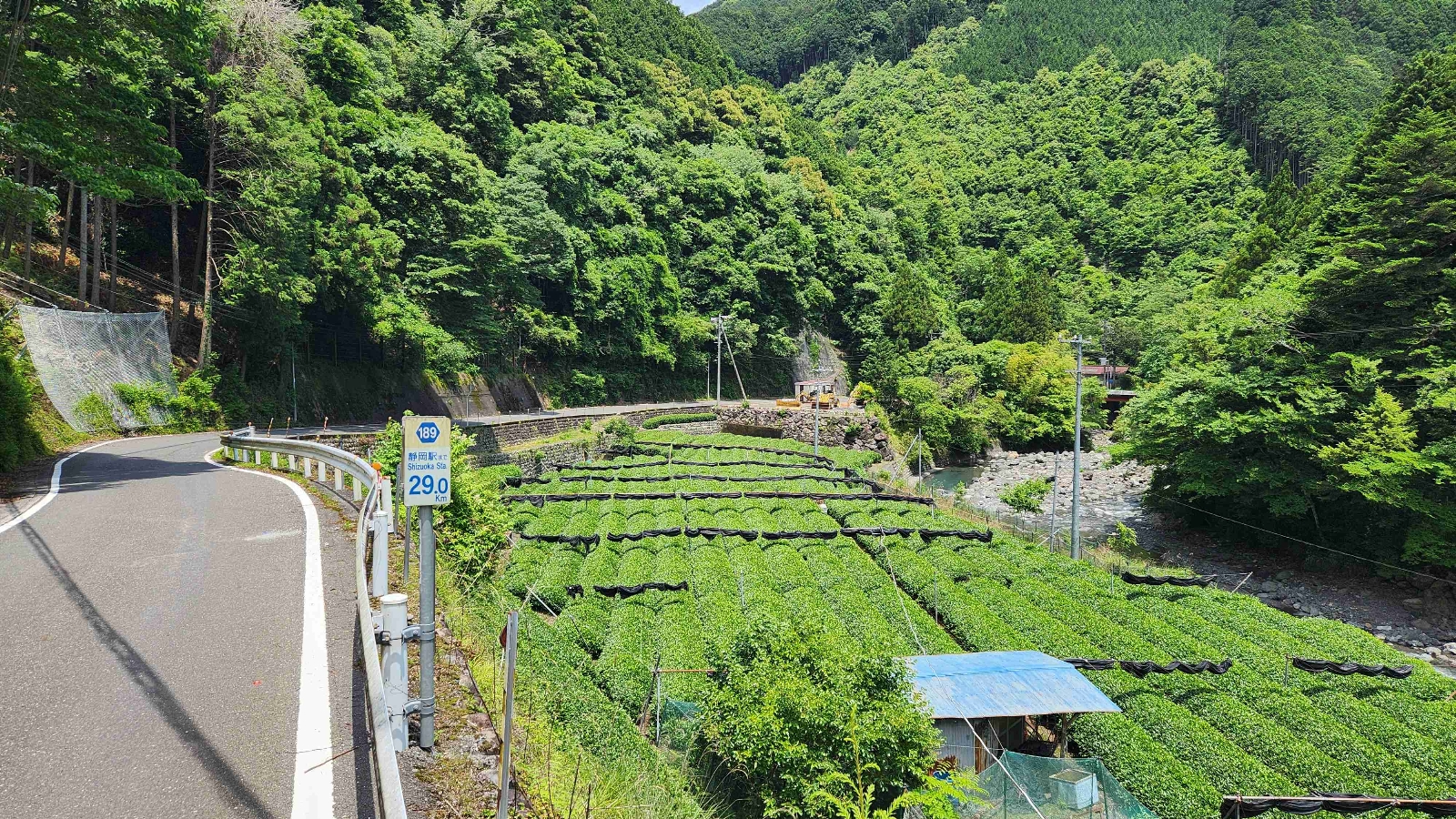 西河内川と三ツ峰落合線の間に挟まれている茶畑。