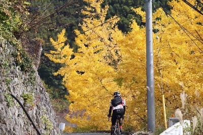 紅葉に隠れる一本の道