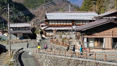 かつて七面山と身延山の聖地を結ぶ参道の宿場町として栄えていた。今でも当時の宿場や石畳が残されており、国の重要伝統的建造物群保存地区に指定されている。