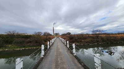 工場に繋がる幅2メートルしかない狭い橋。