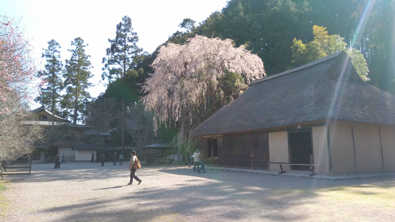 参道が桜の木に囲まれている、1300年の歴史を誇る神社。