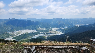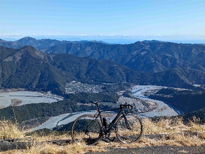 蛇行する大井川を見下ろす、パラグライダー離陸場