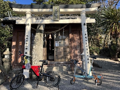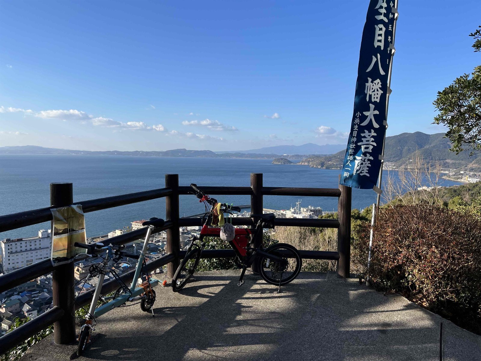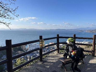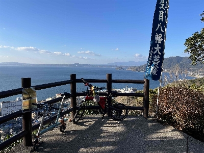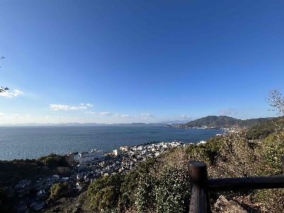 とけん山公園の先の方にある神社。約100m登るだけで小浜温泉街と橘湾を一望出来る。桜🌸の名所でも有名。