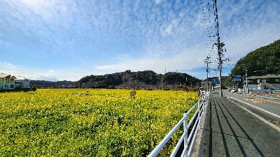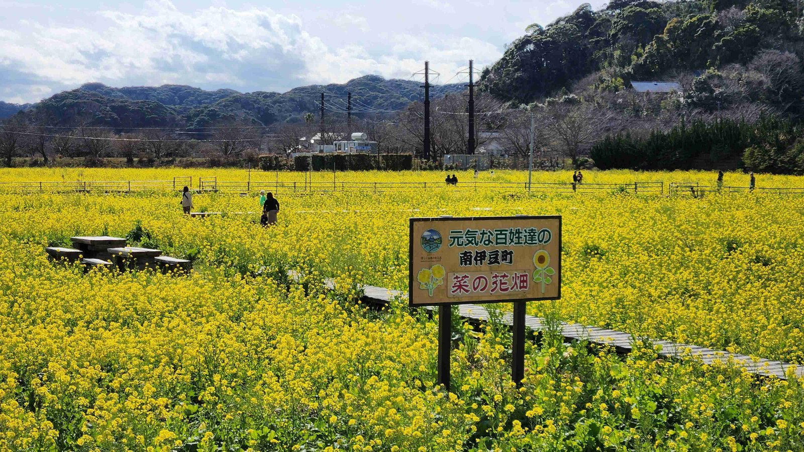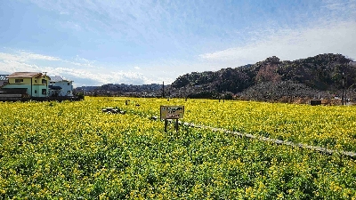 南伊豆町が毎年植えている大きなお花畑。1月上旬から3月にかけては菜の花、そして7月頃にはひまわりが楽しめる。面積はとにかく広く、迫力がある。