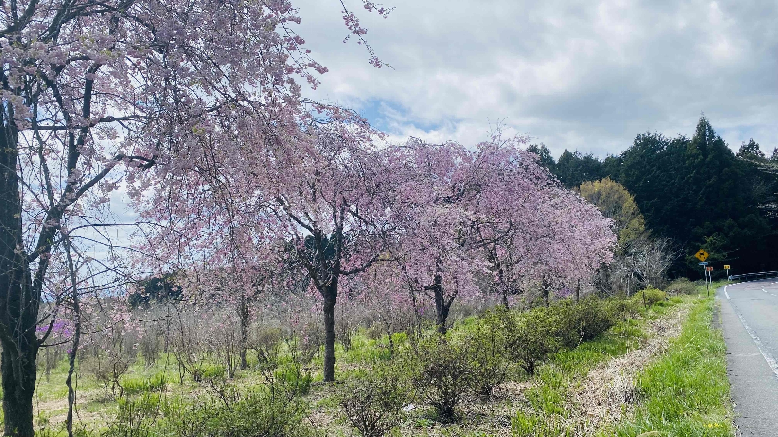 道路の両側に、雄大な菜の花畑の中に並んでいる桜の木。4月がベストな時期だが、富士山も見えるので一年中走っても気持ちがいい場所。