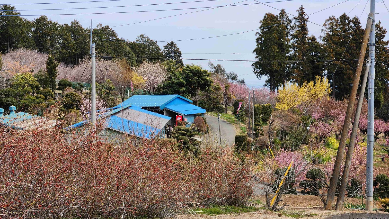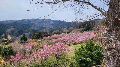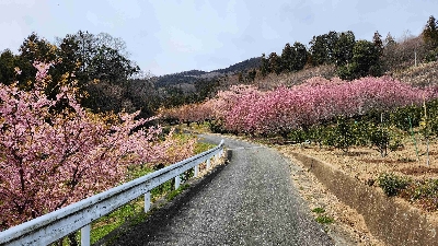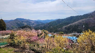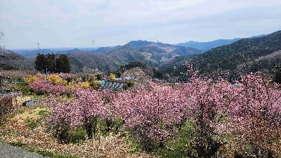 黄色やピンクの花桃はもちろん、梅、河津やソメイヨシノの桜、菜の花など、集落の周りは一面の花が咲き誇っている。3月上旬から4月半ばまで長く楽しめるお花見スポット。