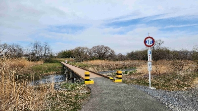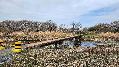 幅員1.4mの木造橋。乗用車では渡れないので、バイクや自転車には逆に最適。