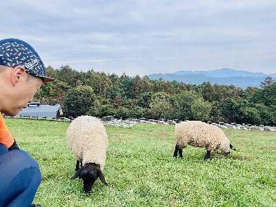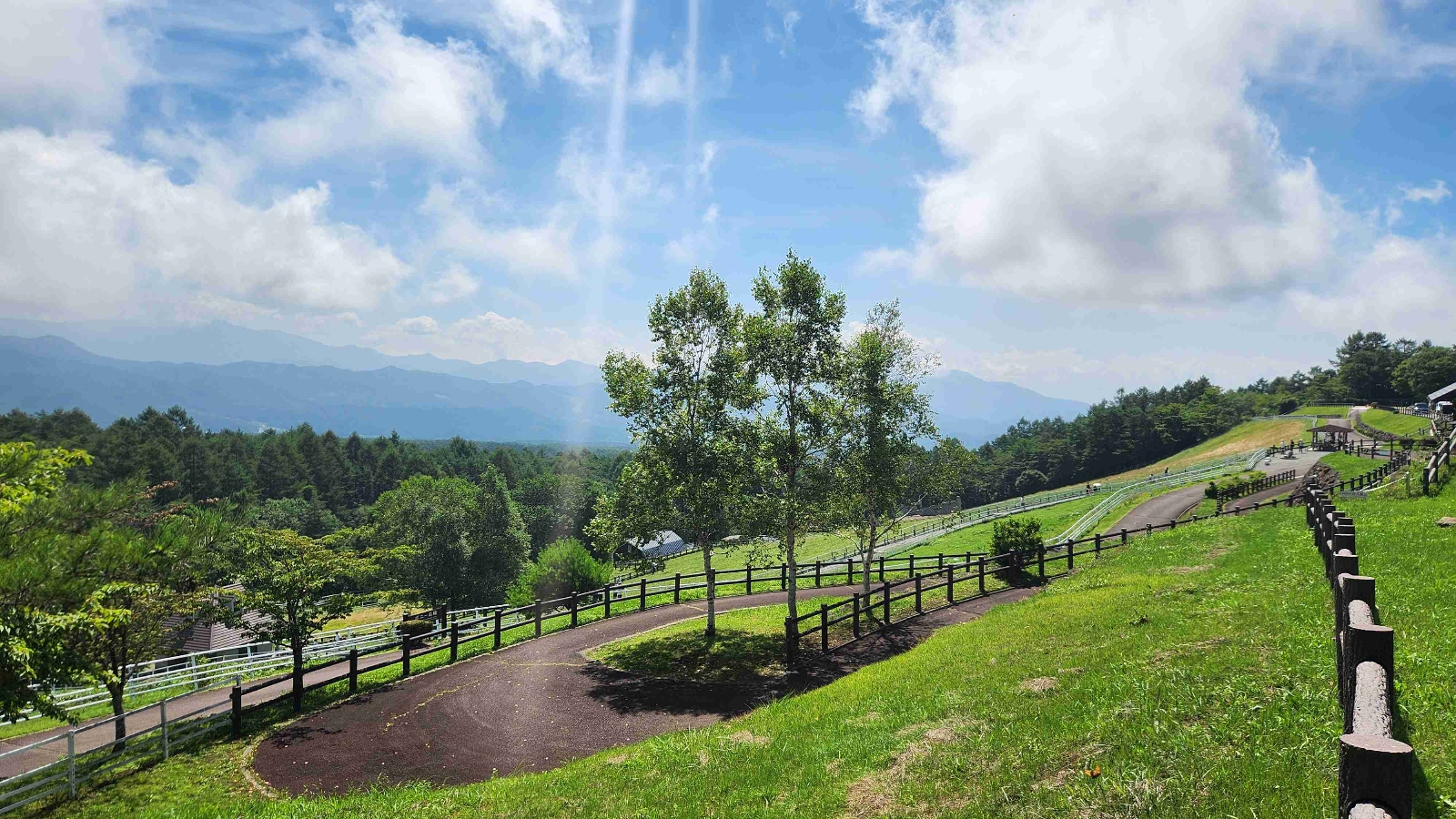 動物と触れ合うことが出来る雄大な牧草地。眺めが良く、富士山が見えることも。
