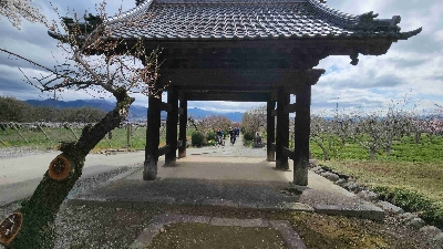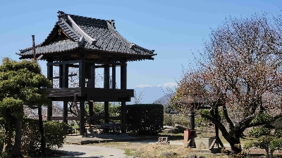 東山梨駅からすぐのところにありながらも、畑に囲まれた立地にある国宝のお寺。本堂の回りに咲く様々な桜が見所のひとつ。