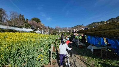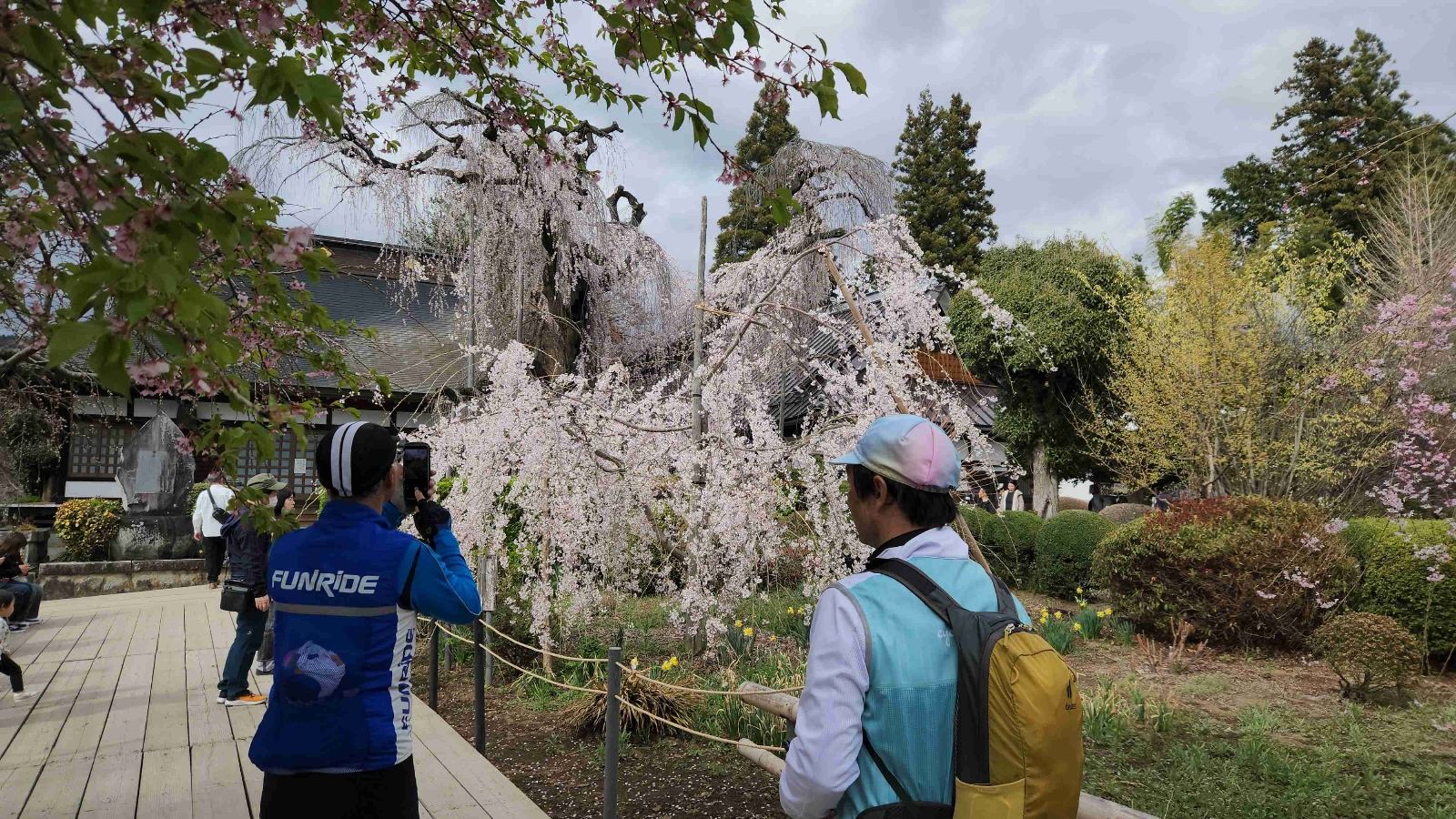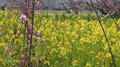 枝垂れ桜と菜の花が有名なお寺。4月上旬になると、周りの桃畑と合わせて、一面のピンクと黄色に染まる季節では屋台が出てたくさんの訪問客で賑わっている。