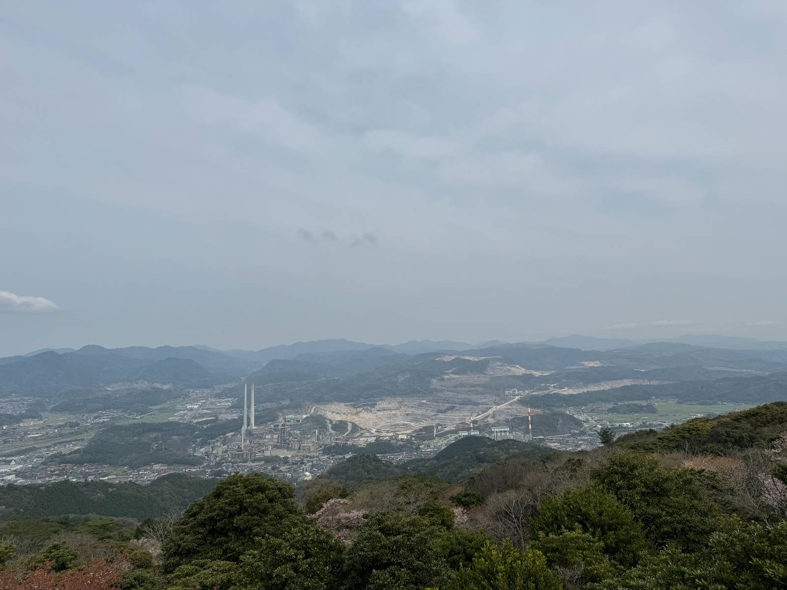 美祢市南部にある桜山の頂上にある展望台。展望台のすぐ近くまで舗装路が続いているので、自転車で登れる。市街地からしばらくはそれほどキツくない坂が続くが、脇道に入ってからは激坂が続く。