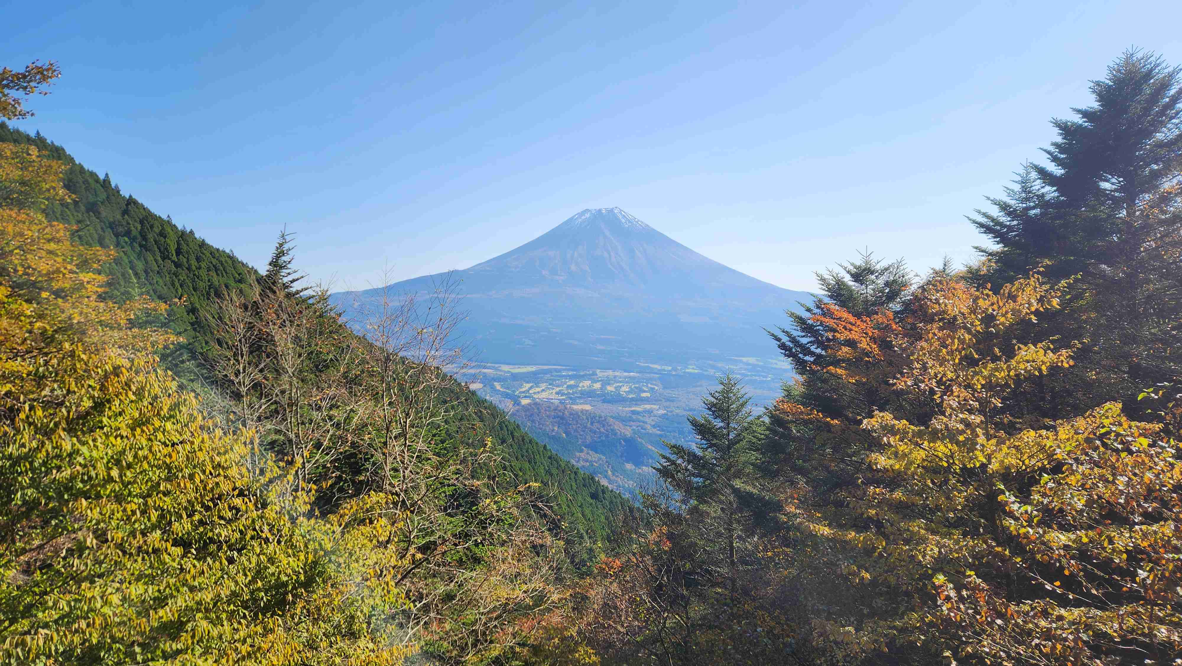 富士山絶景ポイント。標高の高いところから朝霧高原を見下ろし、頭を上げると雄大な富士山の姿が視界を占める。登りの途中でも、富士山を見渡せる場所は数か所ある。5月、麓の気温が高い8月、または10月中旬~11月中旬の紅葉の時期がおススメ。