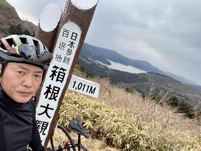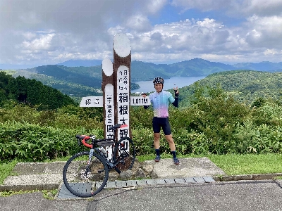 標高は1000mあるため、箱根全体を見渡せる。そして、空気が澄んでいる日は背景には富士山もあり、きついヒルクライムのご褒美として最高の絶景に出会える。