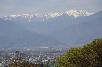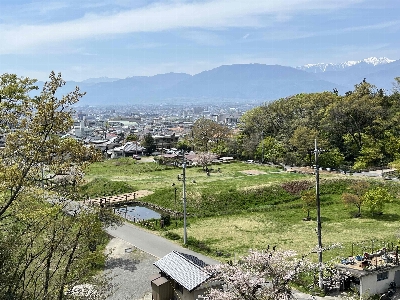 武田信玄が作り上げた城下町を見下ろせ、南アルプスも垣間見ることが出来る。