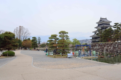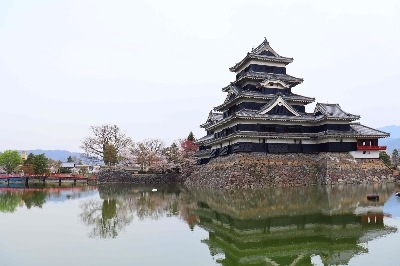 現代に当時のままの造りで残る貴重なお城のひとつで、姫路城、彦根城、犬山城、松江城とともに国宝に指定されている。水面に映る逆さ松本城と雪が残る連峰のコントラストが最高に美しい。