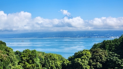 駿河湾と富士山を見下ろせる絶景スポット。海岸を走るのであれば、寄り道をする価値あり。