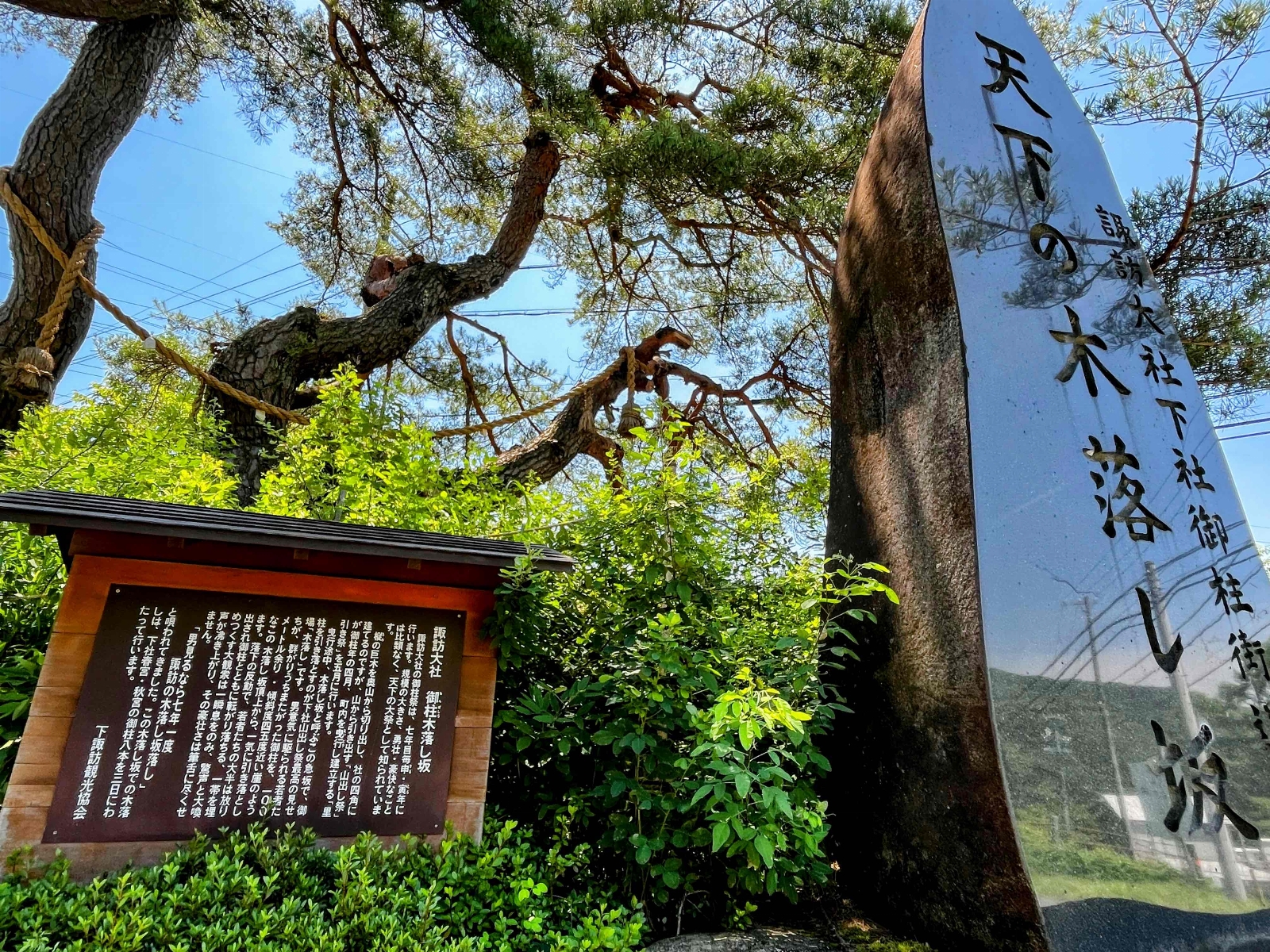 7年に一度行われる(申・寅年)という諏訪大社の御柱祭で「木落とし」が行われる場所。